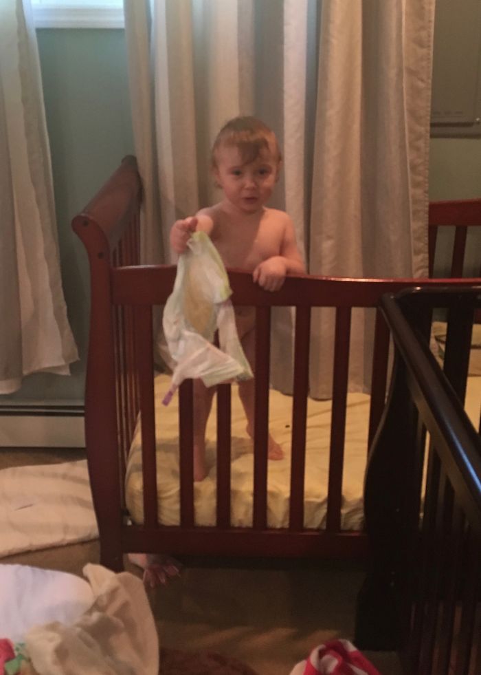 哦,谢谢你自己摘了尿不湿,你身后那是便便吗?