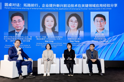 创新者勇攀高峰,在开拓的道路上留下坚实的足迹。在清华大学技术创新研究中心主任陈劲教授的主持下,西门子(中国)智能基础设施集团战略总监兼西门子Xcelerator负责人海玲,华兴资本早期项目组负责人郝洋和普洛斯研究院科技创新副总裁张剑锋围绕各自企业在新兴前沿技术和关键领域的应用经验展开热烈分享。