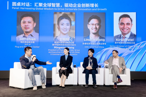 围绕“汇聚全球智慧,驱动企业创新增长”,Plug and Play Tech Center高级副总裁Jeff Chien特别邀请美国风雷集团集团总裁、美中电商贸易协会执行会长王明明,易睿拓思中国区首席运营官Lincoln Wang和英中贸易协会高级总监Kiran Patel担任嘉宾,分享全球开放式创新的丰硕成果和未来发展趋势。