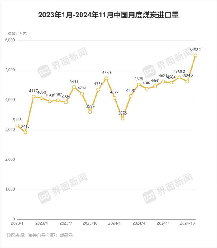 一位港口煤炭分析师向界面新闻指出,进口煤的增量高于需求的增量,也是国内动力煤价持续回落的主因。