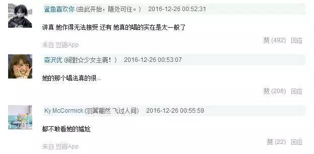 3. 唱腔。这一点是S.H.E时期就追随着Hebe的铁粉最不能忍的。那时的Hebe虽然声线单薄,但发音咬字都很纯粹,听着十分舒服;而田馥甄时期,她的发音变得非常别扭,每一个尾音都经过“特殊处理”,油腻到不行。