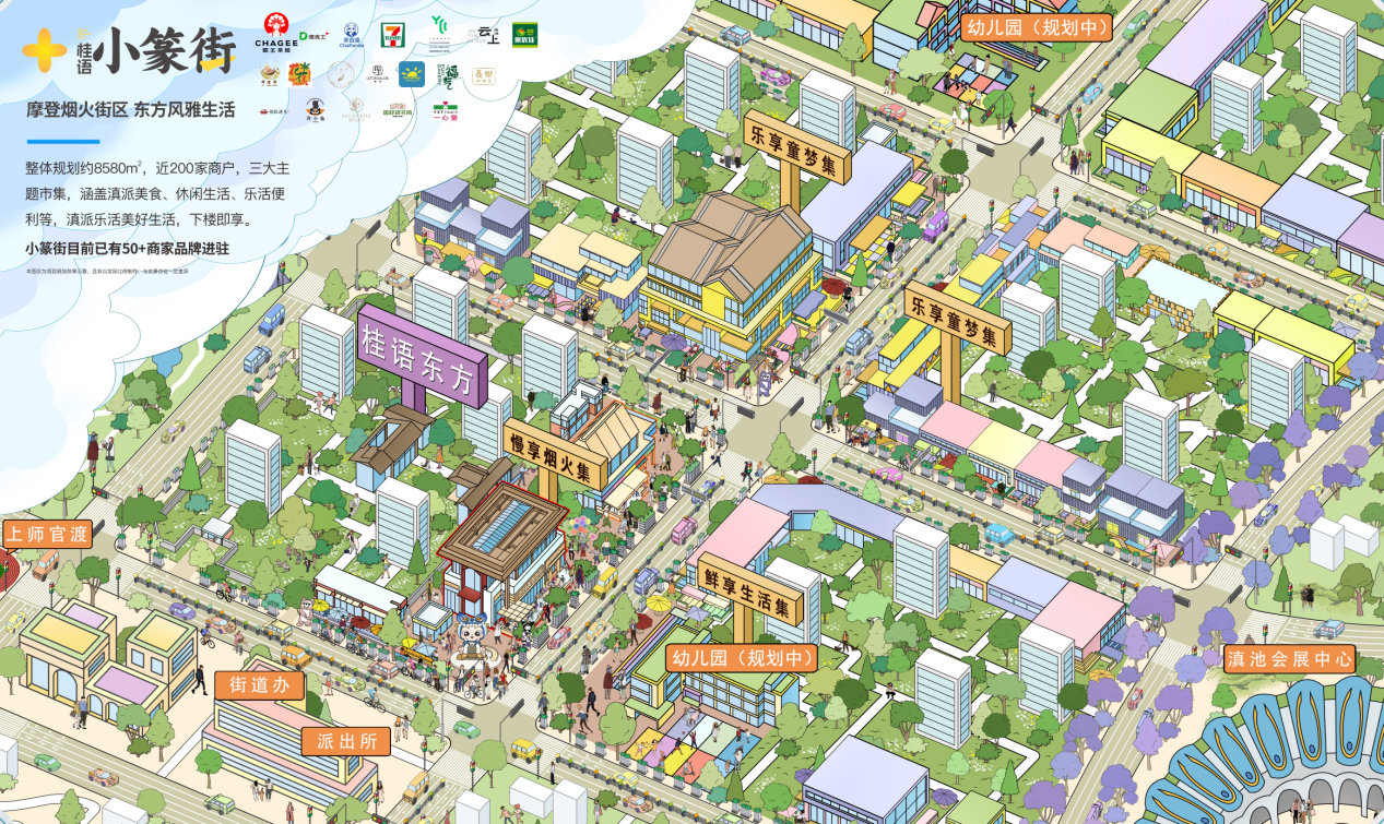 片区内仅剩的痛点,在商业资源方面的欠缺,项目也早就规划有总体量为8580㎡的桂语小篆街,近200家商户,三大主题市集,涵盖滇派美食、休闲生活、乐活便利等。