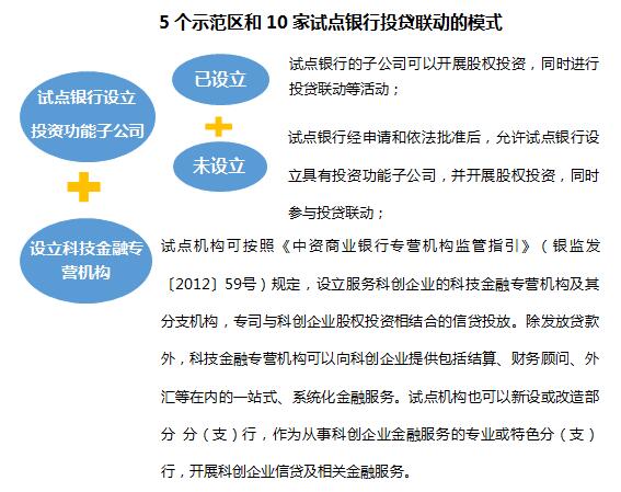 近年来,中国步入经济增速明显放缓、经济结构亟待调整的新常态。在供给侧改革的大背景下,“大众创新、万众创业”逐步成为政府支持产业升级的重要方向。加快实施创新驱动发展战略催生了一大批科技型中小企业,融资需求旺盛。但是由于初创型企业具有轻资产、高风险、缺乏抵押物等特征,与商业银行传统信贷业务不能有机匹配,融资问题成为困扰科技型中小型企业发展的难题,在此背景下,投贷联动应运而生。2016年4月20日,银监会、科技部、人民银行联合印发了《关于支持银行业金融机构加大创新力度开展科创企业投贷联动试点的指导意见》,公布了首批投贷联动试点。首批试点包括5个试点示范区与10家试点银行,其中包括北京中关村、武汉东湖、上海张江、天津滨海、西安五个国家自主创新示范区和国家开发银行、中国银行、恒丰银行、北京银行、天津银行、上海银行、汉口银行、西安银行、上海华瑞银行、浦发硅谷银行共十家银行机构。