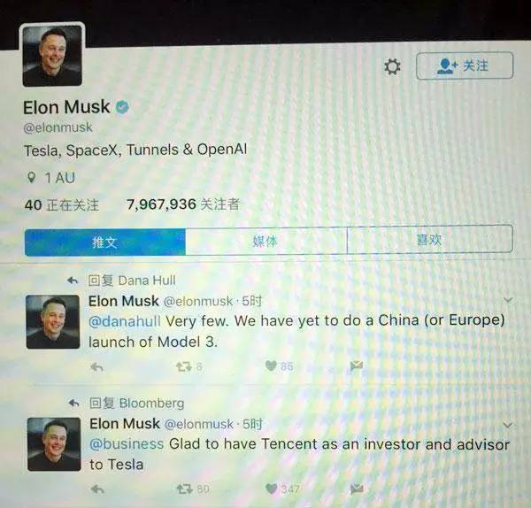 特斯拉CEO埃隆 马斯克也于3月28日在社交媒体推特上表示,“很高兴,腾讯成为特斯拉的投资者和顾问”。但是马斯克并没有指出“顾问”(adviser)的具体含义。