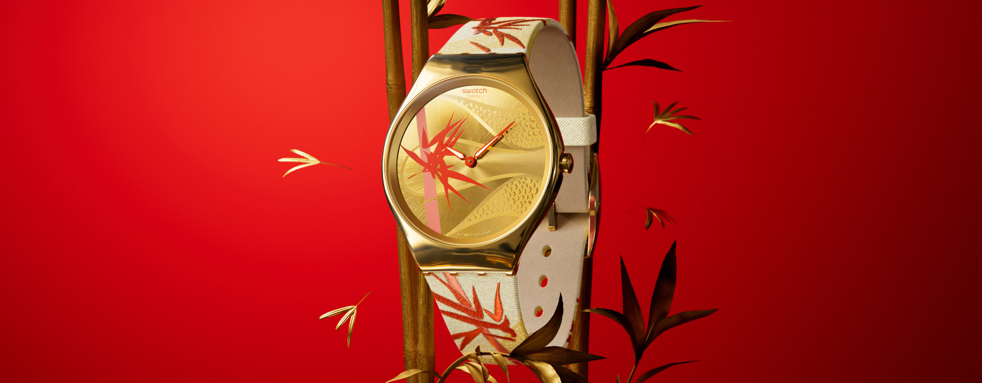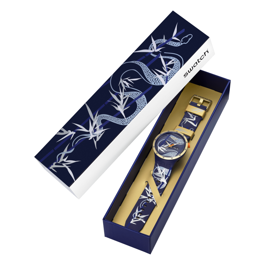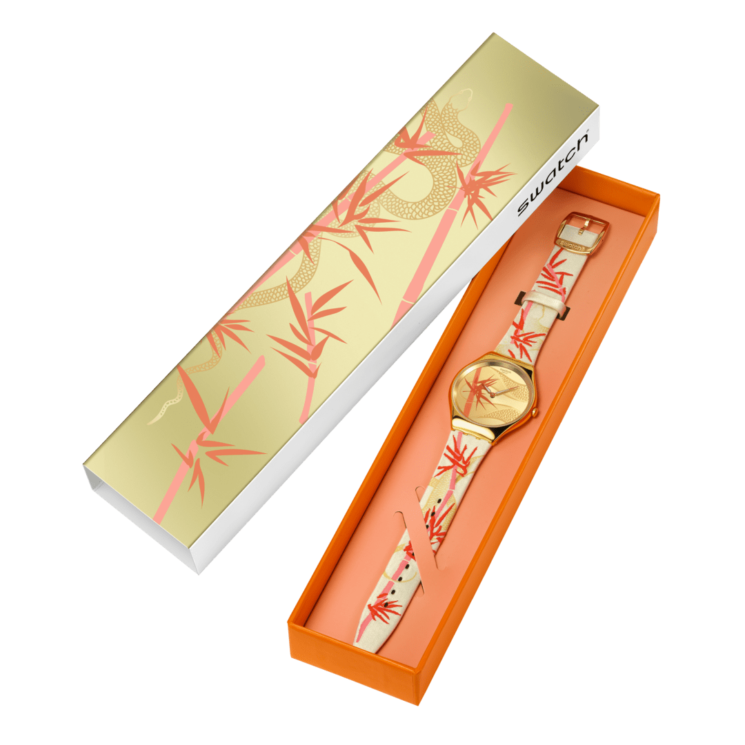 斯沃琪(Swatch)全新蛇年生肖系列腕表的设计灵感源自蛇年所象征的成长、灵活变通与超强适应力,搭配传递自信与独特风格的竹子元素,展现灵蛇破竹迸发的强劲生命力,诠释拥抱变化的深远坚定力量。