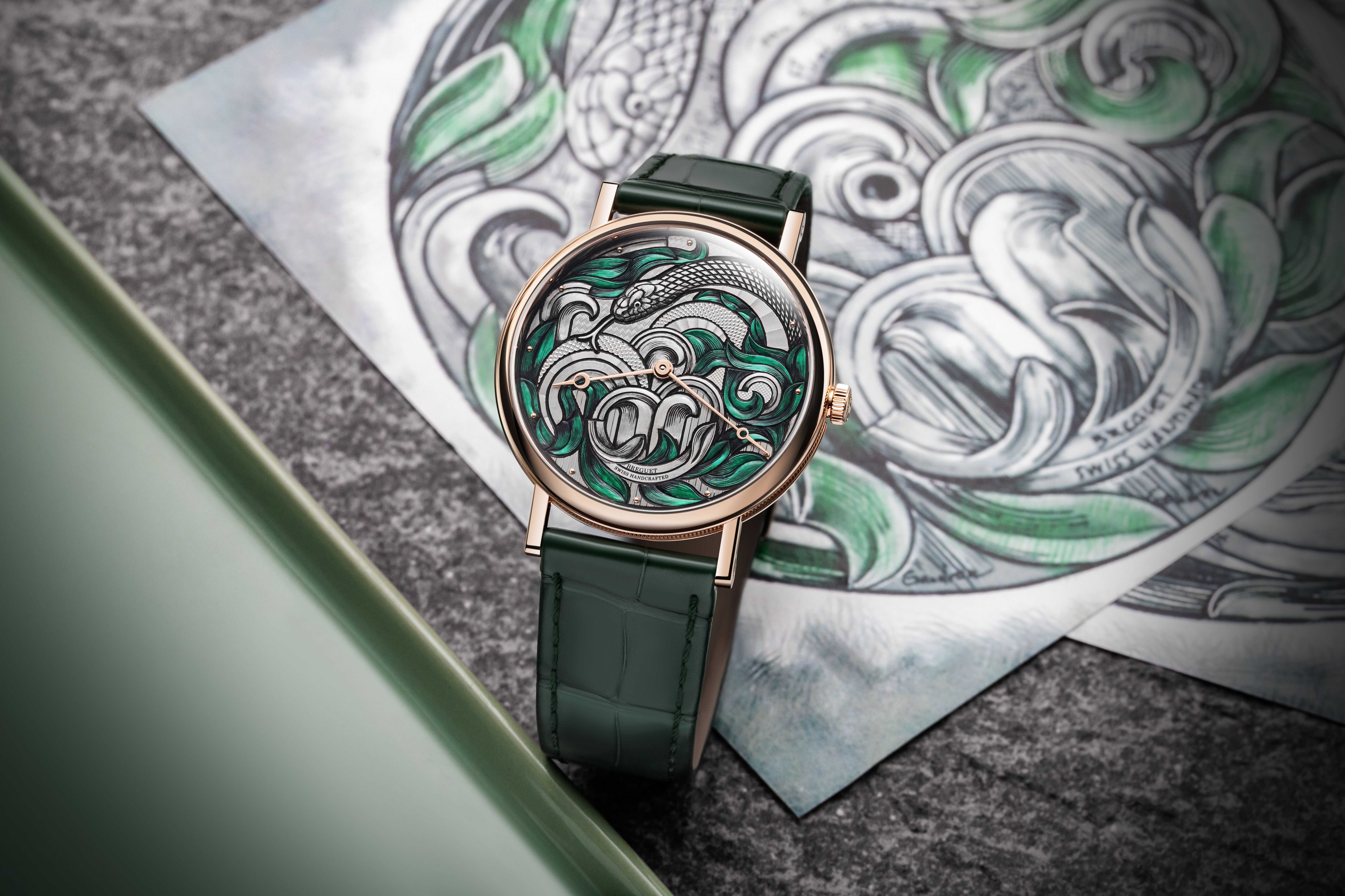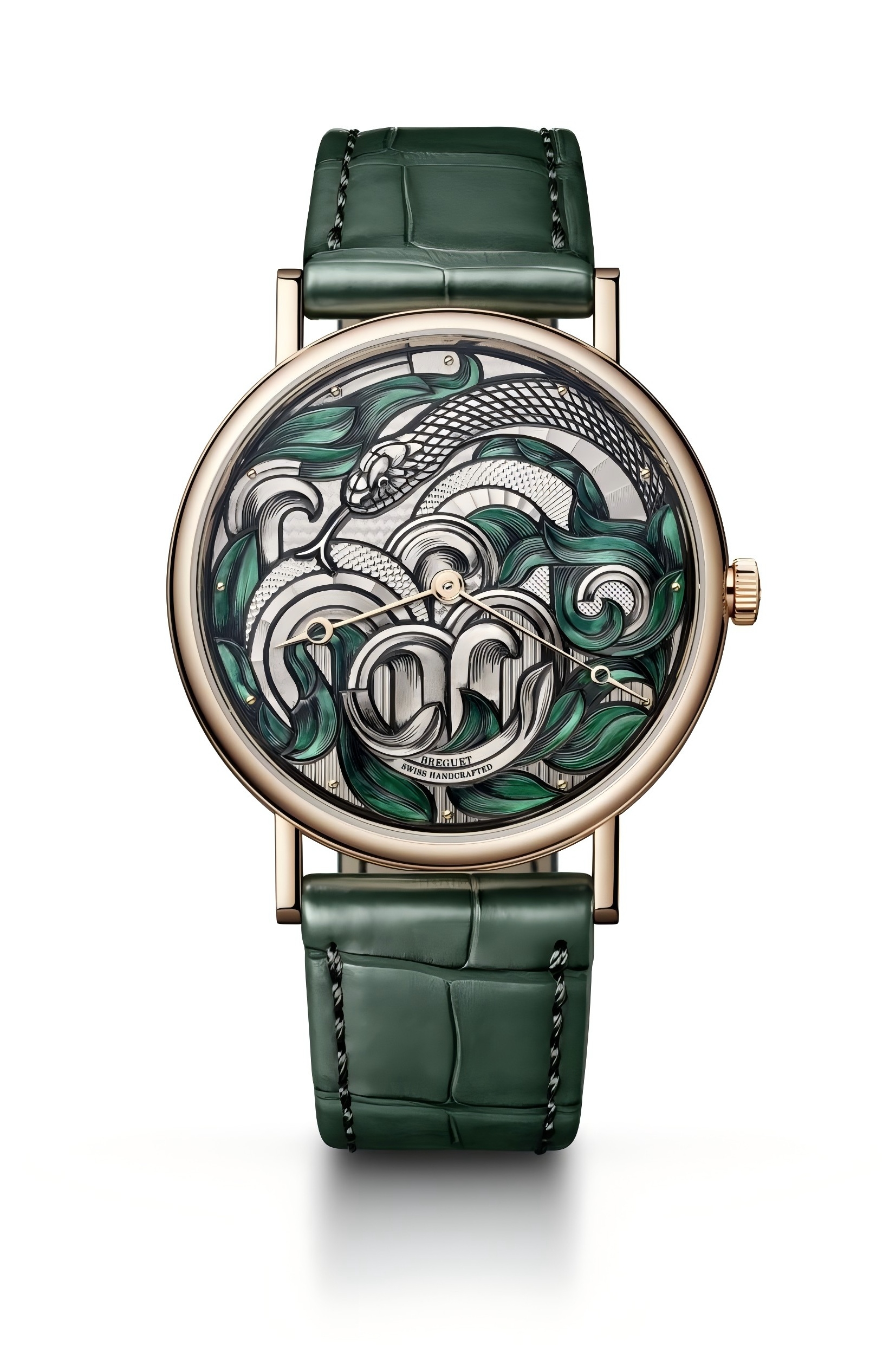 为致敬中国传统生肖,礼赞乙巳蛇年,宝玑(Breguet)推出Classique经典系列7145蛇年生肖腕表,限量发售8枚。