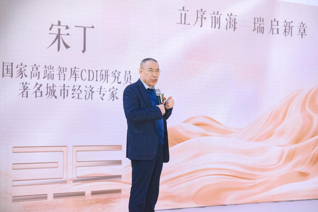 伴随着主持人的开场,深圳市永铭投资有限公司李新民总、国家高端智库CDI研究员/著名城市经济专家宋丁先后上台致辞。首先,李新民总言语中充分表示了盛合天瑞于经典之上,再次焕新前海人居的匠质初心,并致力于对城市建设的践行与探索,追求非凡从未懈怠的精神理念。