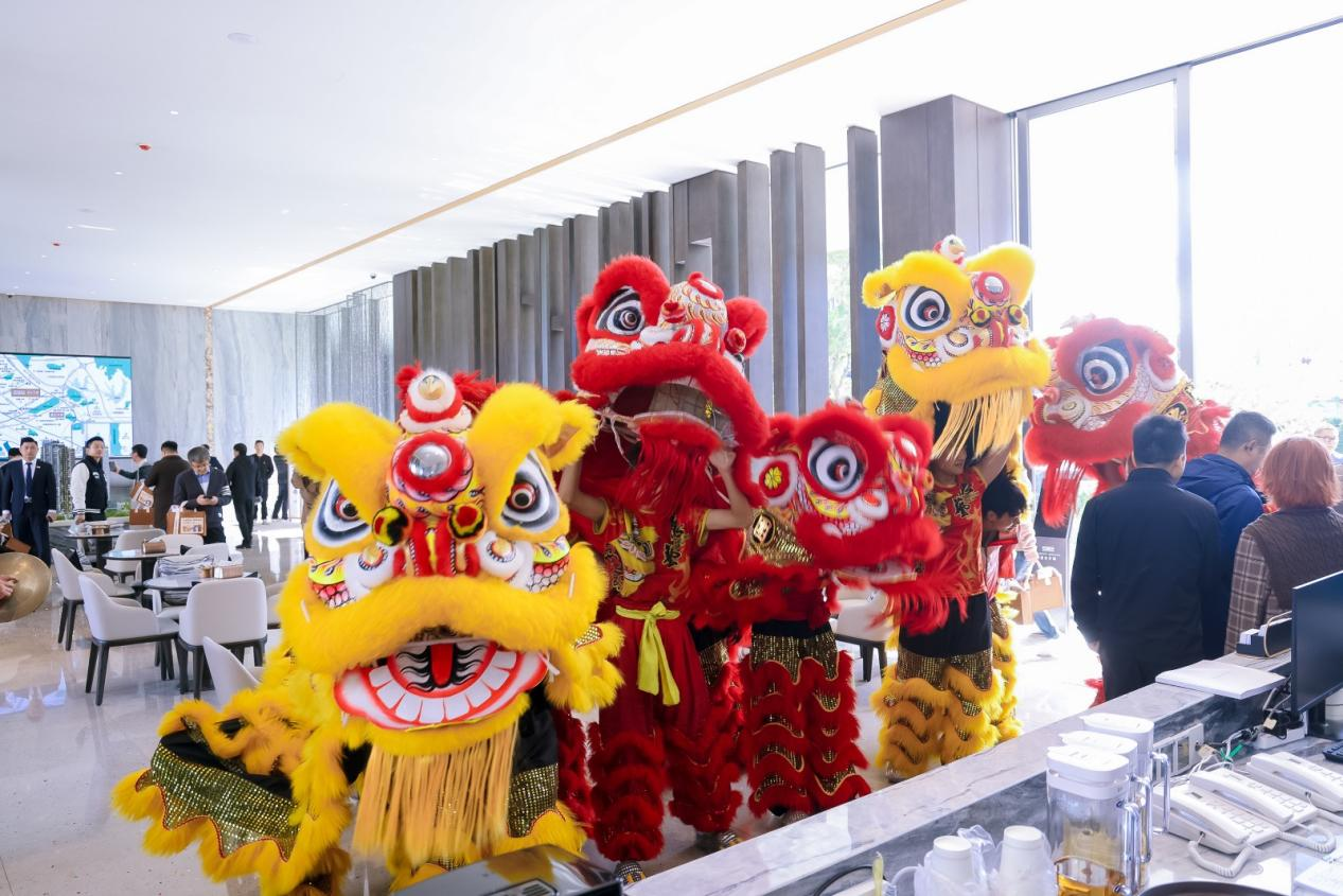 致辞结束,随后舞狮登台表演、剪彩仪式,各领导携手拉开彩球,融合东方美学与现代居住理念的示范区正式亮相。随后来宾们陆续进入示范区内部,精致考究的装饰,兼顾品质与美感,工法细腻、细节严苛,高颜值实景质匠和鸣,足见开发商诚意满满。