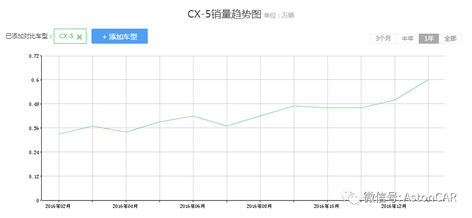 CX-5作为马自达旗下的SUV主力车型,无疑承担着马自达的销量使命,但其在中国销量的表现却不尽人意。2016年CX-5在国内总共售出50147辆,占马自达总体销量约18%,与2015年相比仅增长3.2%。单月销量徘徊在5000辆,与同级别的CR-V、RAV-4、奇骏、昂科威过万的月销量相比,相去甚远。