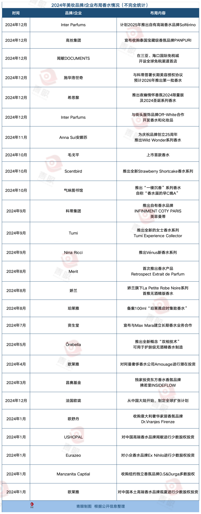 24家,国内外美妆企业/品牌扎堆加码香水赛道