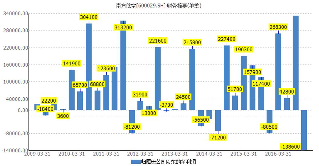 以南方航空为例,公司在去年第四季度亏损了13.86亿元,创下自2009年以来单季亏损之最。东方航空同样如此,中国国航则表现尚好。