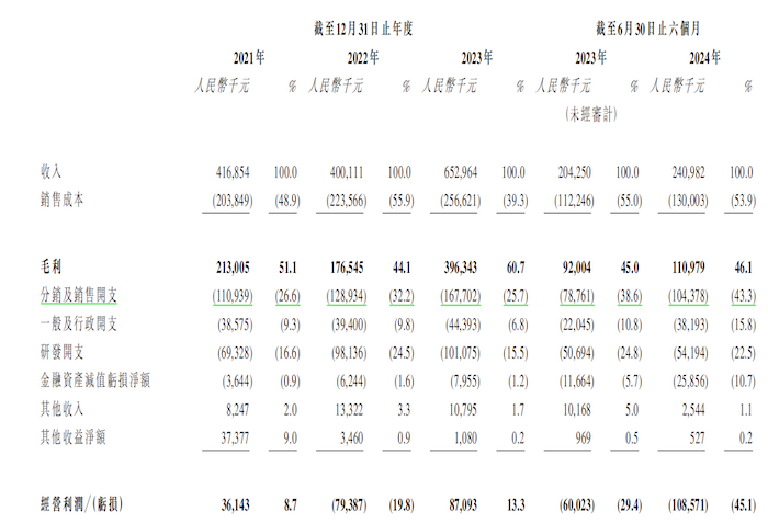 2024年上半年,卓越睿新的销售及分销开支同比增加32.5%至1.04亿元,占收入的比重从38.6%增长至43.3%。
