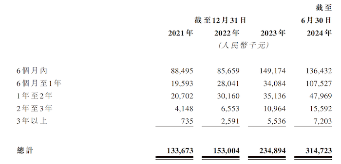 据披露,贸易应收款项及留置金应收款项一般于6个月内到期。截至2024年6月30日,公司6个月至1年的的贸易应收款项及留置金应收款项同比增加215.48%,公司对此表示为业务扩张影响。