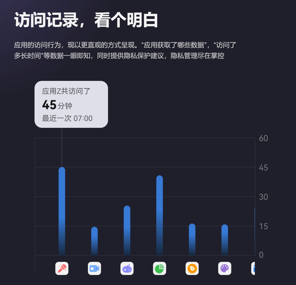 其隐私安全中心更是可以实现一站式管理数据,让应用行为更透明。用户可以从重新设计的界面数据展示,看清所有应用对权限使用的次数和时间,精确感知应用的风险行为,并能够基于自己的需求和判断采取直接管理。