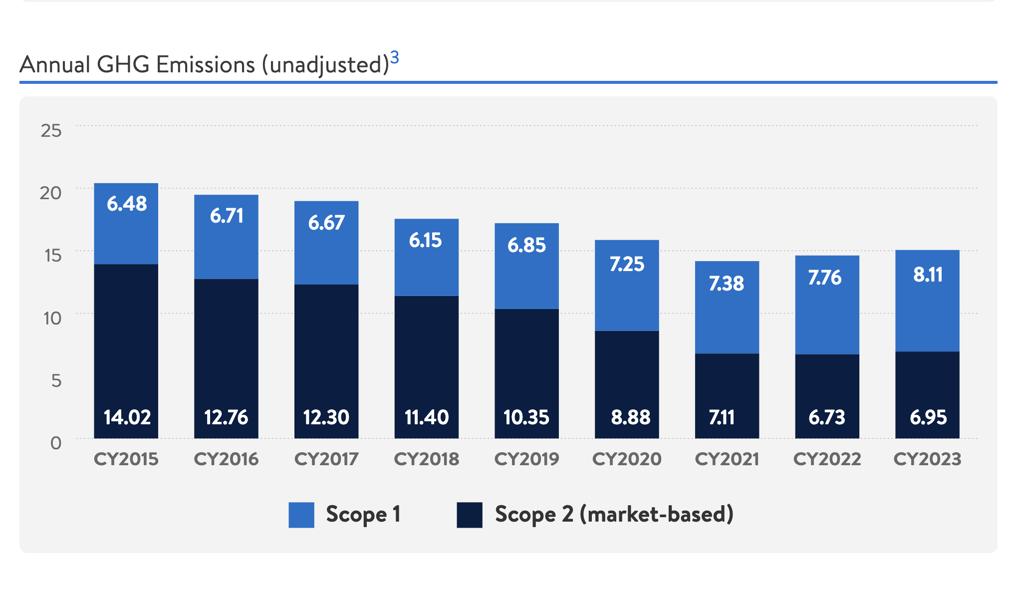 该公司制定了到2025年一半业务使用可再生能源、到2035年全球所有业务都使用可再生能源的目标。截至2023年,该公司通过可再生能源已满足其全球48%的电力需求,并通过可再生能源合同直接采购了30%的能源需求。