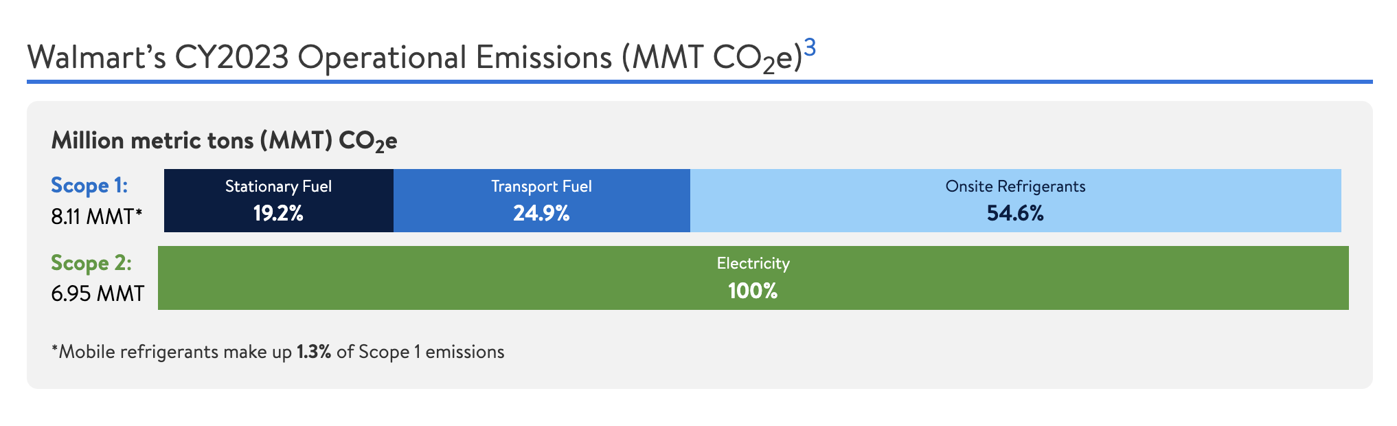 沃尔玛认为,实现净零目标的过程并非是线性的,并指出了2023年排放量上升的三个驱动因素,包括老化的制冷设备造成的污染、运输产生的燃料排放以及可再生能源扩张相对于业务增长的放缓。
