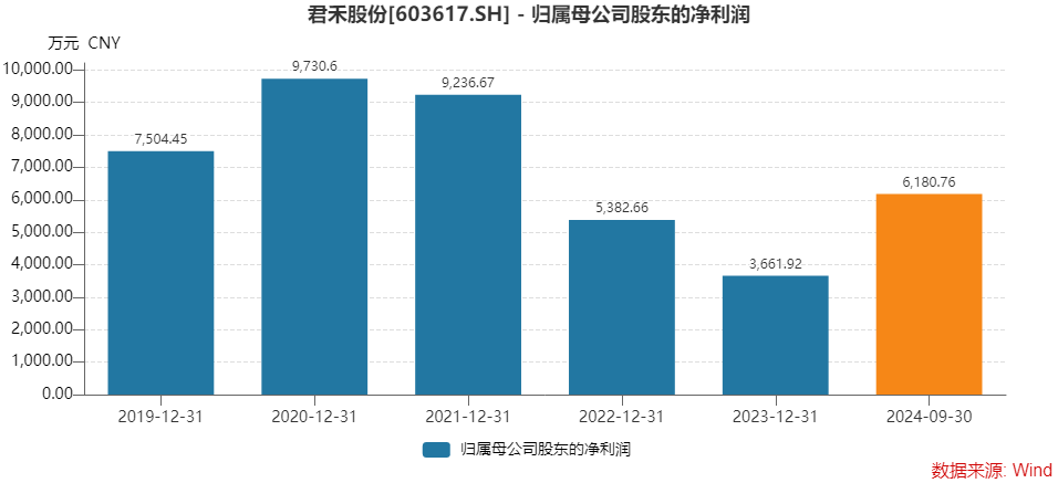 公告显示,君禾股份预计2024年度实现归属于母公司所有者的净利润为7,600万元到8,200万元,同比增加107.54%到123.93%。