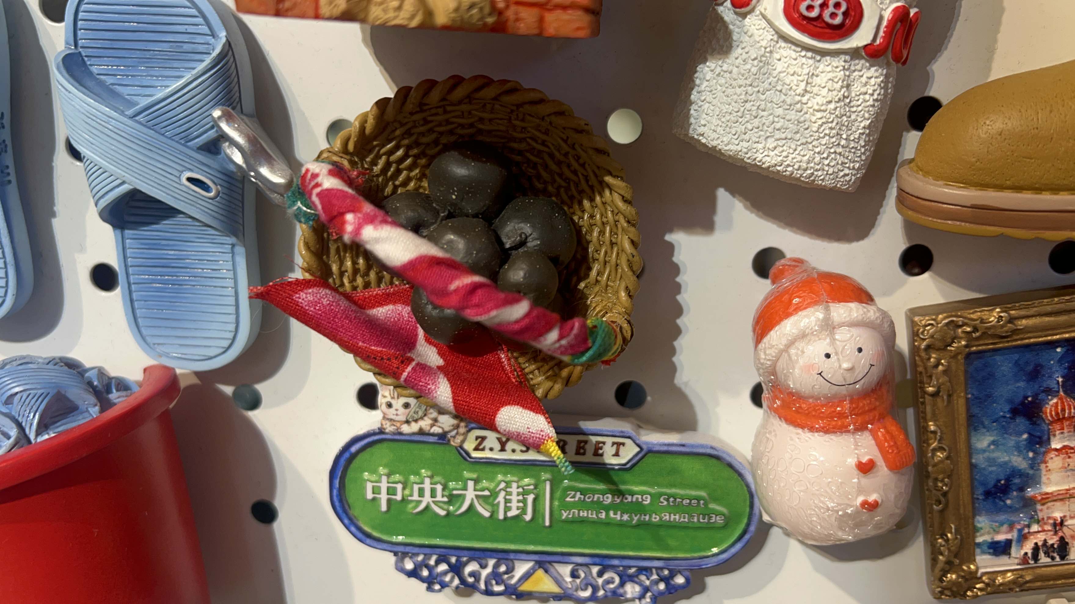 冻梨冰箱贴、冻梨毛绒玩具……不甘只做美食,冻梨还悄然挺进文创领域。它带给人们的不仅是味觉上的享受,还以它的黑硬形象当起了挑战者:来吧“尔滨”老铁,我看你能把我做成多大,还能整出啥花样!
