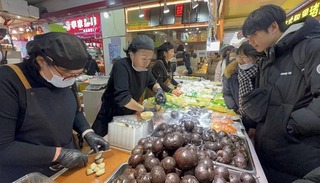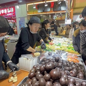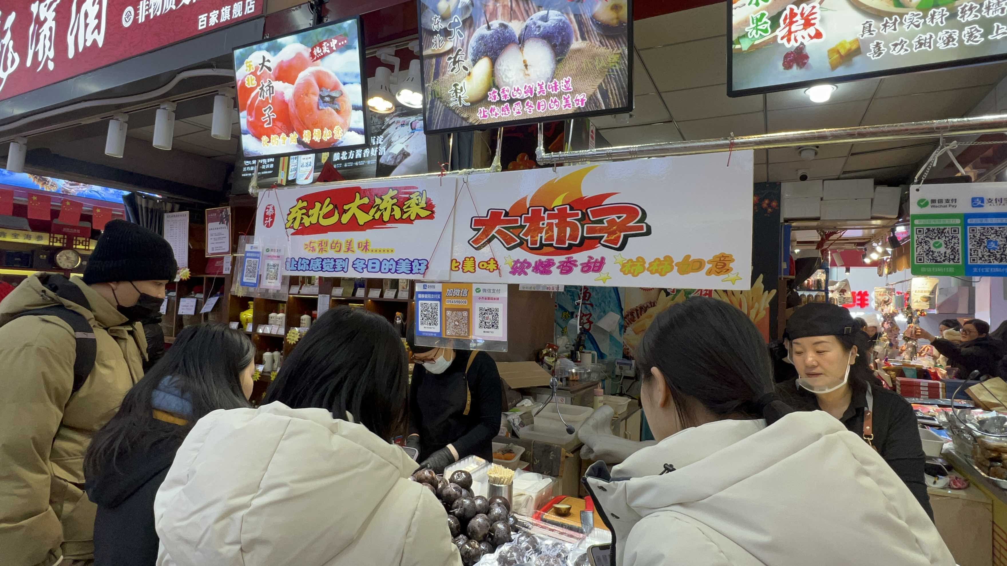 看到游客们满意的神情,齐德红十分欣慰,“上个冰雪季,看到哈尔滨本地餐厅推出的冻梨摆盘菜品很受欢迎,我就寻思怎么能把摆盘冻梨进行转化,让游客更便捷地品尝咱们东北特色冻货。”在道里菜市场从事40多年冷冻食品特产销售的齐德红经过一番调研,决定增加冻梨等冻货品类 。“这冻梨我们不仅准备了缓化好的,还有没解冻的,顾客是想现场吃还是打包带走,都可以。就是想邮寄,我们也免费给真空包装。”他一边向记者介绍,一边给冻梨去把、去核,然后切块,用餐盒装好,再附上餐具,“把服务做细,游客的体验才能更好。”细致不仅体现在服务上,从梨子的品种选定、冷冻的方法,他都做足了功课,最高日销量达到近千盒。