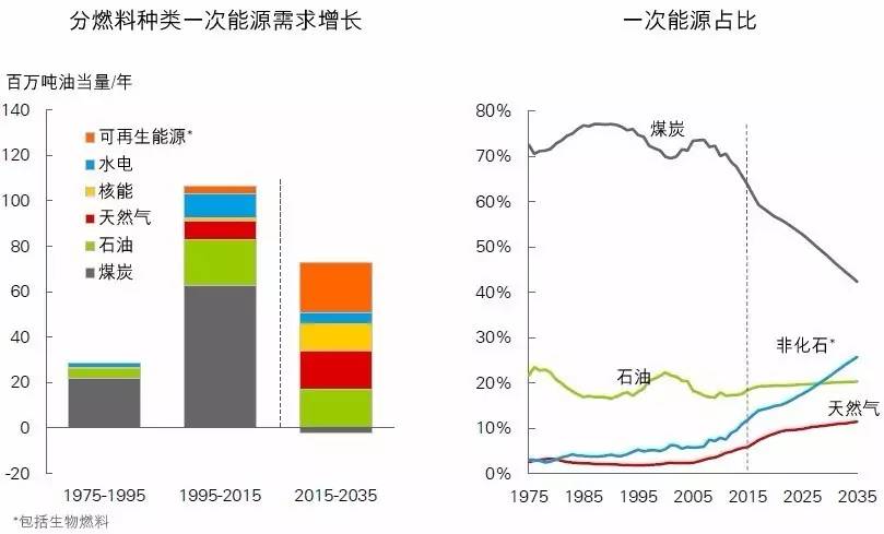 煤炭仍将是中国的第一大能源,但在能源需求中的占比将下降到42%。煤炭减少的量,将由可再生能源、核能和水电取代;