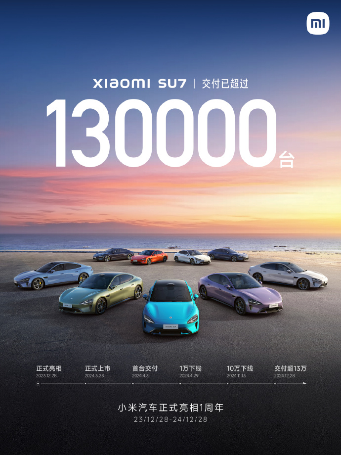 小米汽车:小米SU7全年交付量超13万,提前完成年度目标