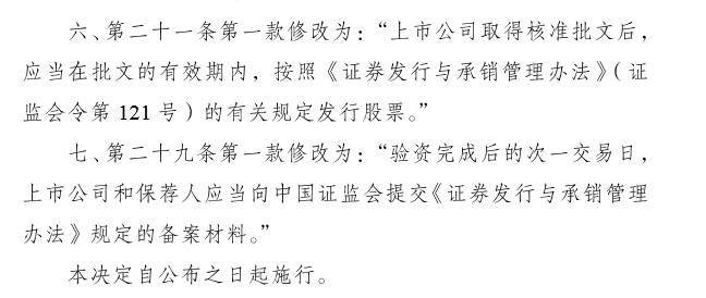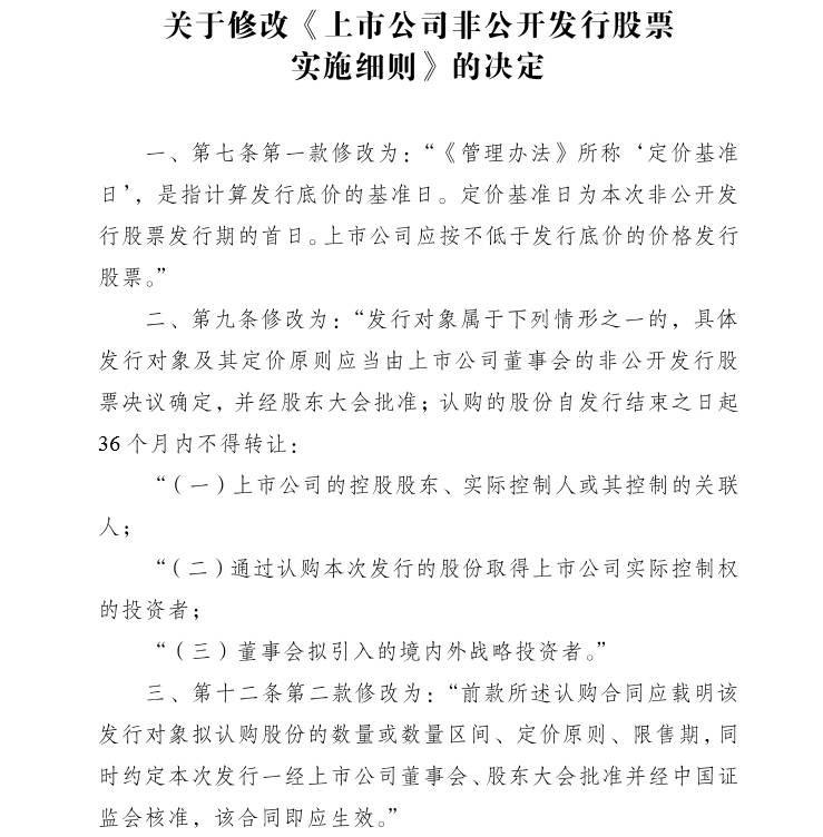 二是《关于修改〈上市公司非公开发行股票实施细则〉的决定》