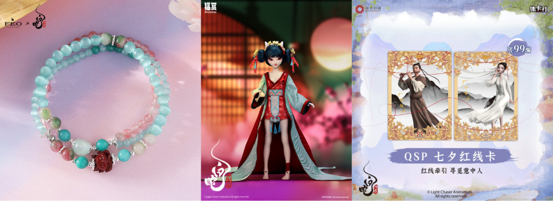 今年,《白蛇3:浮生》打破七夕档动画电影累计票房纪录,白蛇IP也借机与金石盟珠宝、北京一卡通、YHD羊很大、芬兰珠宝FEO、花朝记、边福茂、MIMI、华莱士、YoBoo圆本、泡泡玛特福赏工作室、集卡社等一系列品牌推出了联名产品,在阿里鱼旗下“造点新货”平台的正版周边也热销。这一批联名产品、周边基本都在电影预热以及上映的7月至8月间集中推出。