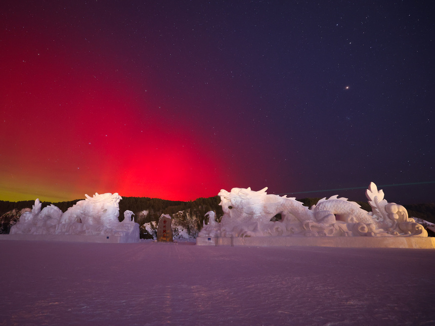 受地磁暴影响,新年第一天,黑龙江漠河出现绚丽的极光美景,让大批在漠河欢度新年的游客惊喜不已。