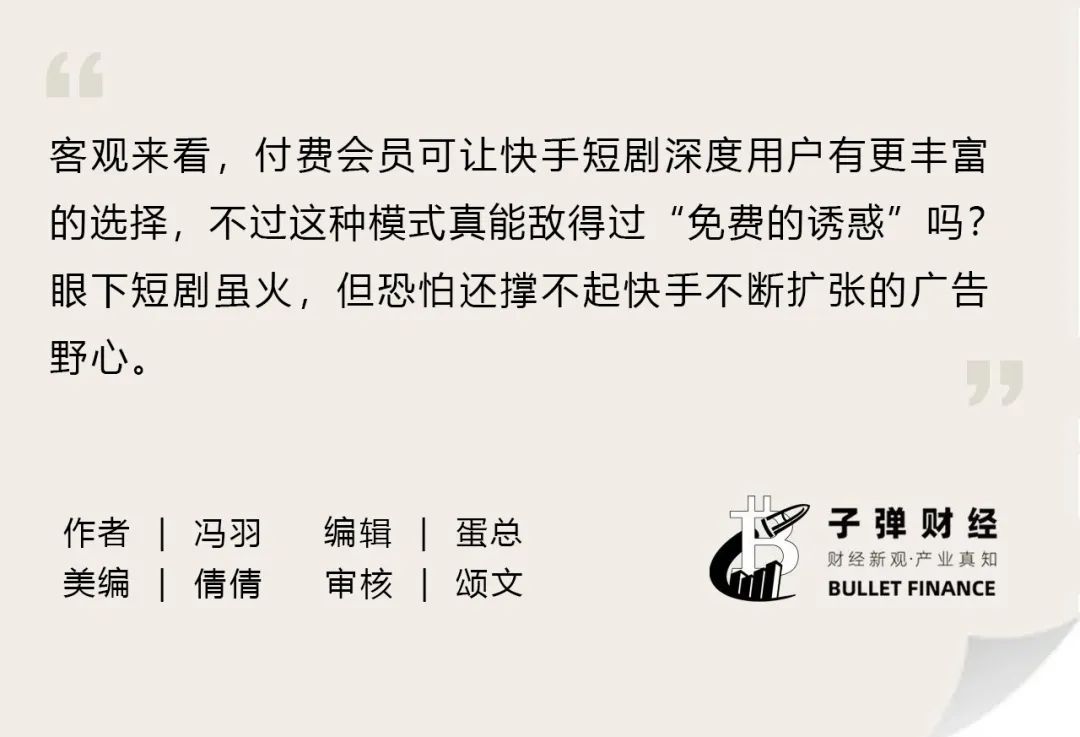 客观来看,付费会员可以让快手短剧深度用户有更丰富的选择,不过这种模式能敌得过“免费的诱惑”吗?
