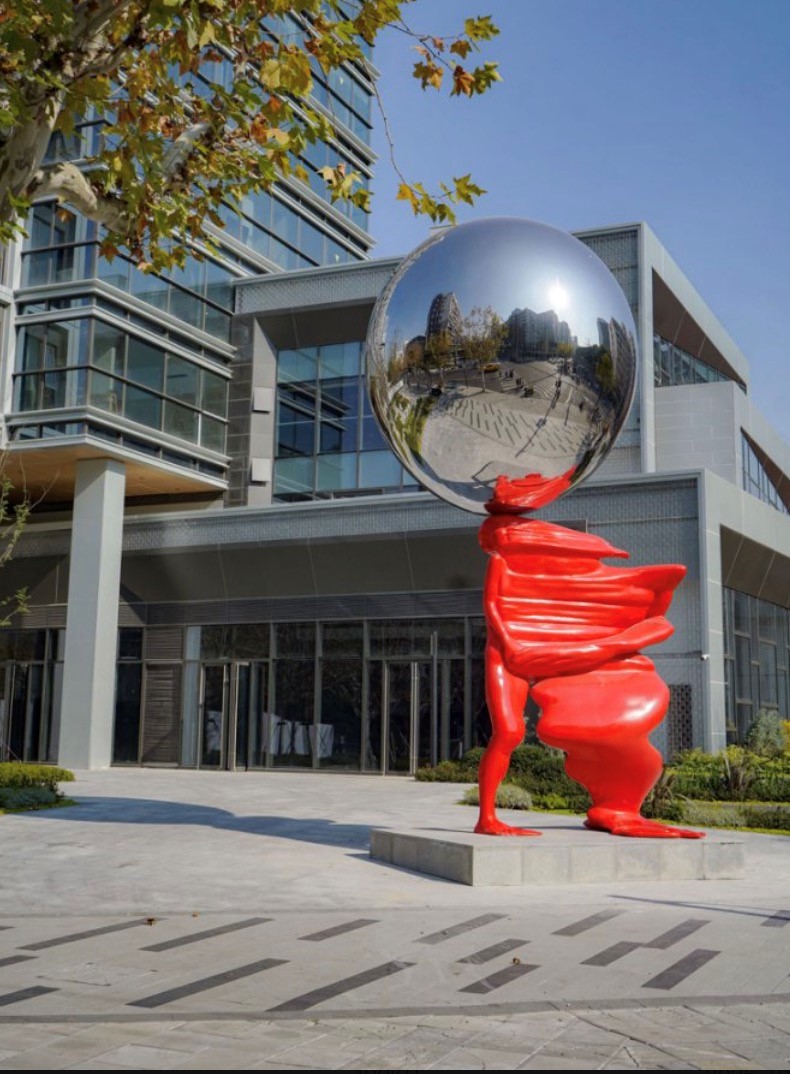 在西南入口的三角形夹角处,《平衡之巅》则以稳健的姿态寓意着在变化莫测的世界中寻求平衡的重要性。这是雕塑艺术家陈文令的“小红人”系列作品,自2000年代起“小红人”系列已成为其标志性作品。