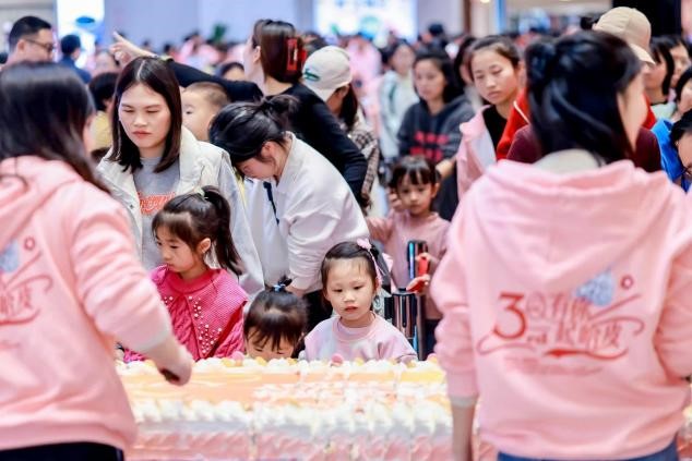 (3周年庆典切蛋糕仪式、现场派发蛋糕抓拍)