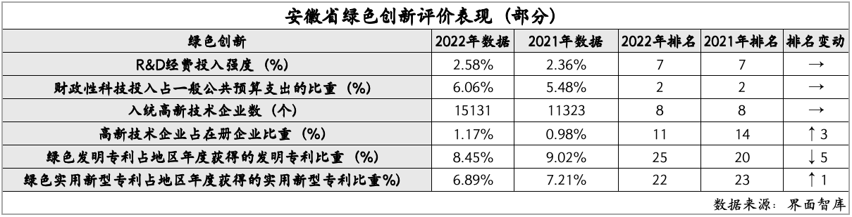在绿色创新方面,安徽的得分为83.81,较上年前进了1名,位于第11名。