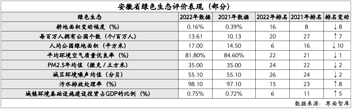 在绿色生态方面,安徽得分84.25,位于第16名,较上年前进了3名。