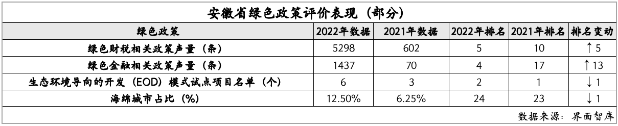 在绿色政策方面,安徽得分为80.70,位列第11名,较上年前进了3名。