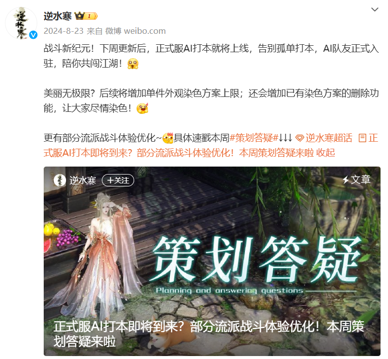 不仅技术在持续突破更新,各行各业对AI应用也越发常见,如腾讯的《王者荣耀》《和平精英》,网易的《燕云十六声》《逆水寒》运用AI技术提升玩家体验。国内中影年年、玄机科技等动画公司积极研发AIGC模型,提升制作效率。