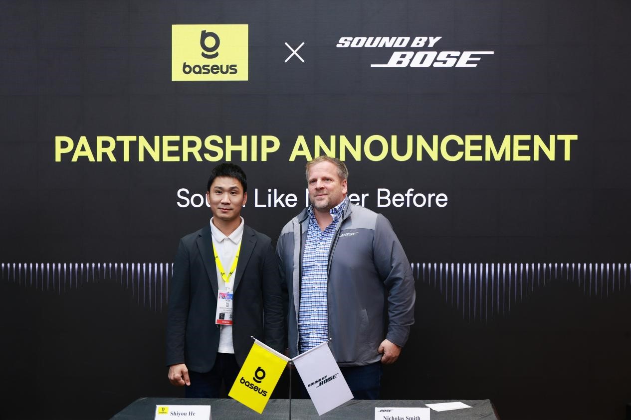发布会上,倍思与音频创新先驱品牌Bose正式宣布达成战略合作,倍思科技CEO何世友对媒体表示:此次双方合作的目标是将倍思的行业经验与Bose的音频创新结合起来,为消费者创造高品质的产品。秉承我们的核心价值"Base on User",我们致力于为消费者提供卓越的用户体验。