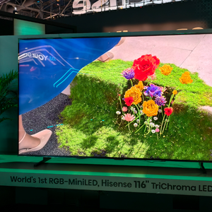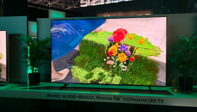 先说海信,在CES开幕的前一天,海信发布了全球首款搭载RGB-Mini LED技术的产品,这款产品相比主流电视的优势在于有更逼真的显示色彩、更丰富的细节以及更高的亮度,一句话来说就是全面超越以前的电视。