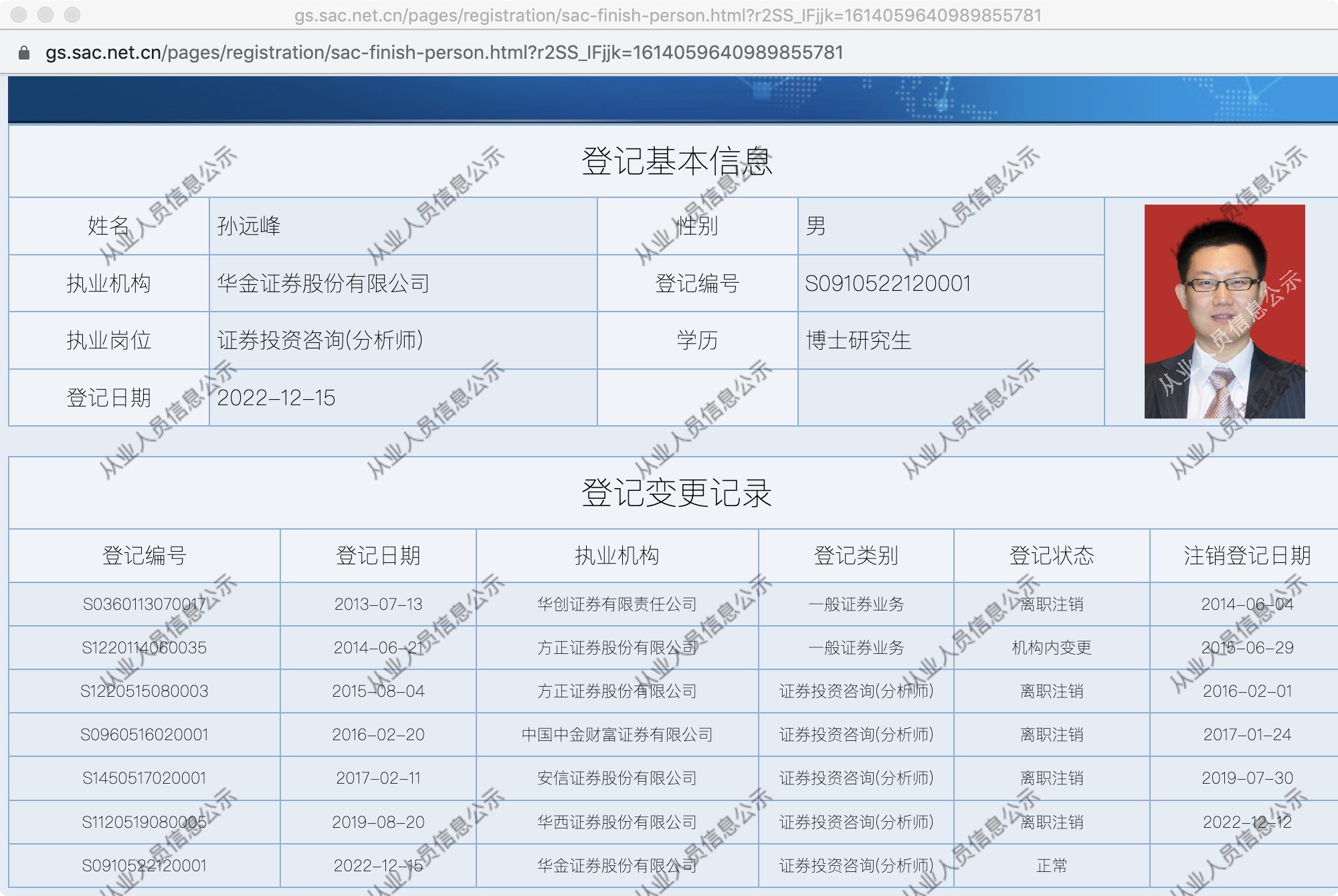 目前,孙远峰在中证协的登记信息暂未变更。据行业内部人士透露,孙远峰刚刚向华金证券提请离职,相关流程待进一步落实。