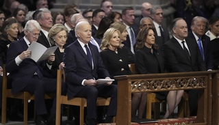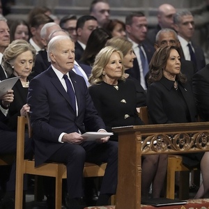 即将离任的拜登致悼词,4任前总统克林顿、小布什、奥巴马及特朗普悉数出席,包括加拿大总理特鲁多等其他国际领导人、亲朋好友在内数百人也参加了仪式。当天为全美哀悼日。特朗普此前对1月20日自己就职典礼当天国旗继续处于降半旗状态表达了不满。