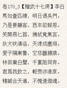 李白曾在《赠武十七谔》的序言里提到,他有个周游江湖的门人叫武谔,是个性格朴质、沉毅勇猛的好汉。听说李白的儿子陷于山东乱军之中,这位门人就自告奋勇把小李公子接回来了。李白为此就写了这首诗赠予武谔,以表谢意。