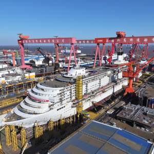 由于建造物量巨大、建设周期长、工艺要求高,大型邮轮与航母、液化天然气(LNG)船一同被誉为世界造船业皇冠上的“三颗明珠”。