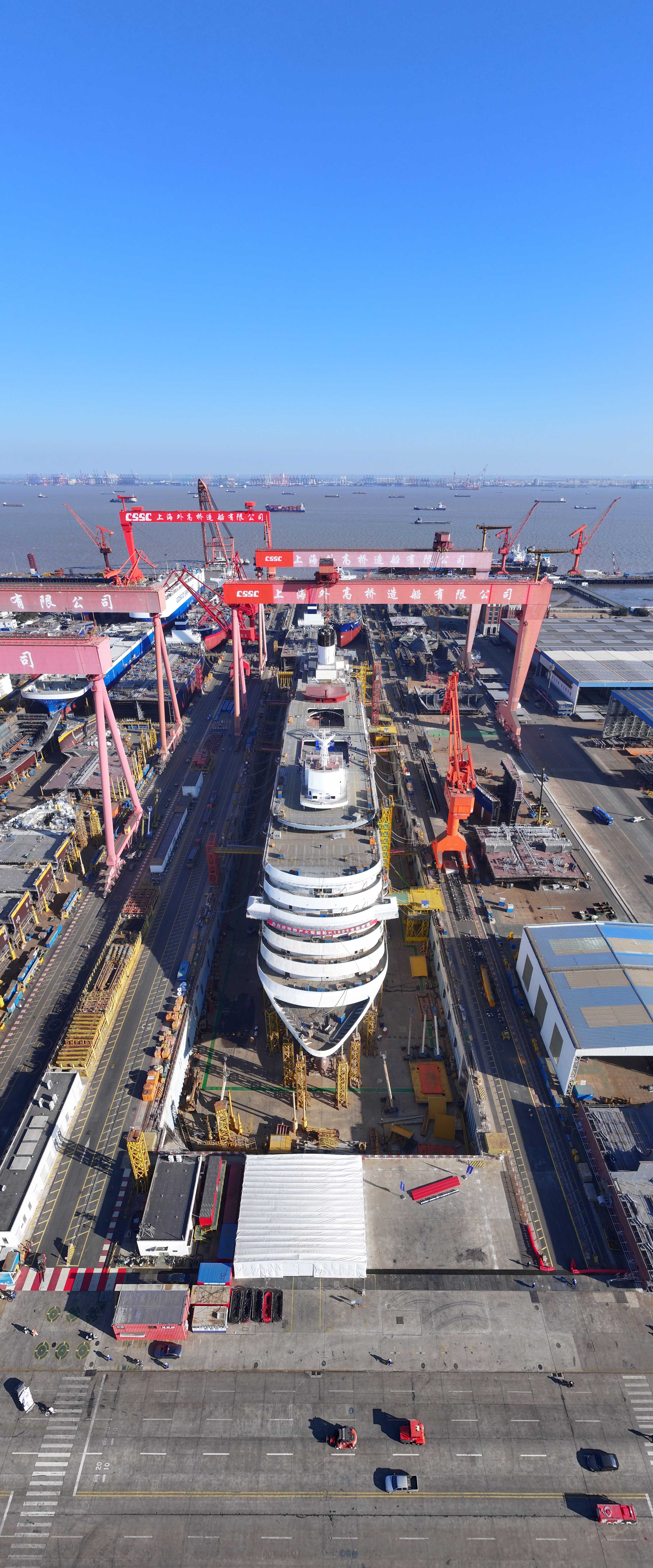 据外高桥造船介绍,H1509船从入坞总装搭载到全船贯通,用时不到9个月,较首制船缩短了超2个月,建造速度已与欧洲顶尖大型邮轮建造企业比肩。此外,H1509船的建造在搭载精度、数字化管理、安全管理等方面都有了进一步提升。