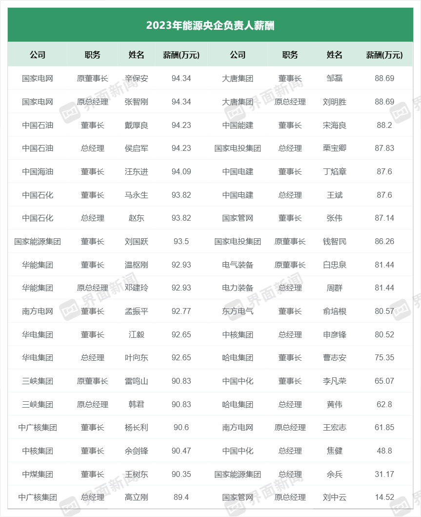 能源央企高管最新“工资条”出炉。