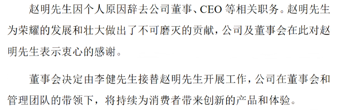 赵明顺利完成了带领荣耀从谷底回到舞台中央的艰巨使命。此次换帅,以李健过往的市场经历,会为荣耀的IPO进程,以及全球高端化征程带来新的想象空间。