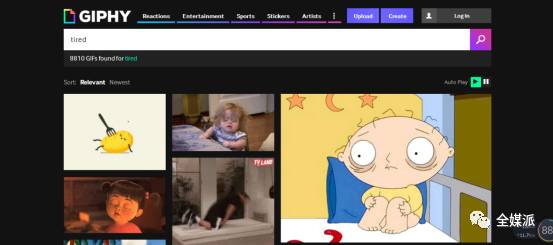 GIPHY最棒的一点是,当你输入某个关键词譬如“Tired”亦或是按照某一类别进行搜索时,会立即弹出一堆优质且相关密切的GIF,而这种瞬间的惊喜感很让人上瘾。