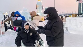 这个冬天让南方游客更为赞誉的是,“尔滨”的科研工作者将从植物中提取的环境友好型色素融入冰雪艺术创作中,通过绿色环保方式打破传统单色局限,在科技赋能下实现冰雪雕塑的多色神奇蜕变,赋予冰雪新的生命力,得到众多科研专家和冰雪雕刻师的广泛认可。
