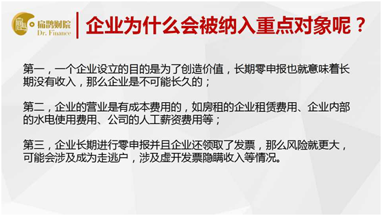 第一、一个企业设立的目的是为了创造价值,长期零申报也就意味着长期没有收入,那么企业是不可能长久的;