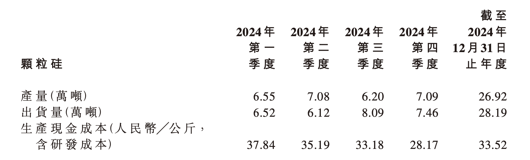 公告显示,2024年四季度,协鑫科技颗粒硅产量7.09万吨,销量7.46万吨,含研发费用现金成本28.17元/公斤,较三季度的33.18元/公斤降低15%,刷新行业纪录。