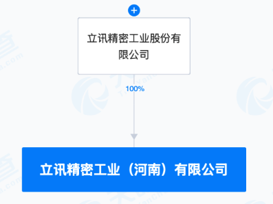 天眼查App显示,近日,立讯精密工业(河南)有限公司成立,法定代表人为杨占林,注册资本8000万元,经营范围包括汽车零部件研发、汽车零部件及配件制造、汽车零配件批发、电子元器件制造等,由立讯精密工业股份有限公司全资持股。