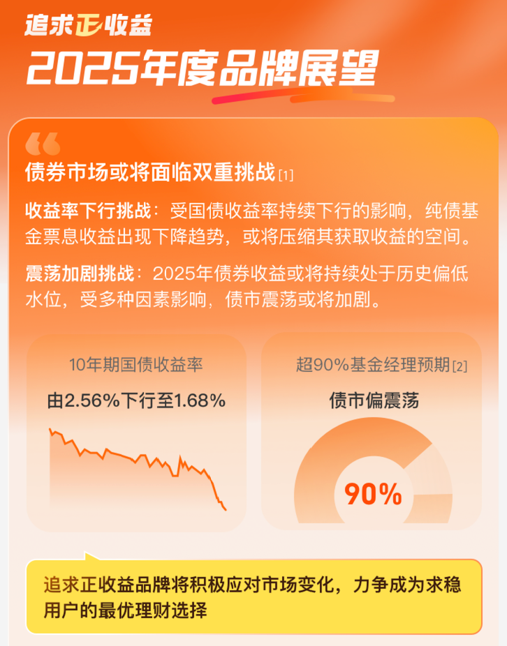 需要注意的是,蚂蚁基金在展望2025年时,调研了多方机构观点并提醒,超90%的基金经理预期2025年债市震荡或将加剧,受国债收益率持续下行影响,收益空间或被压缩,用户应结合自身投资目标和风险偏好理性选择。